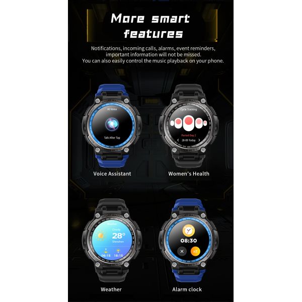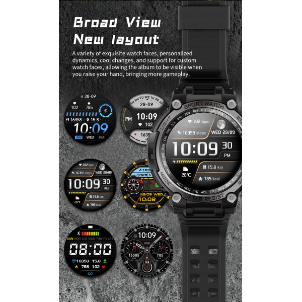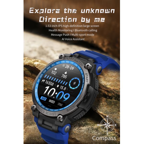 | Product Features | Bluetooth Call, Step counter, sleep, heart rate, blood pressure, blood oxygen,compass, call reminder, multi-sports mode, dial selection, stopwatch, music control, sedentary reminder, drink reminder, alarm clock, raise your hand to brighten the screen, dial replacement, remote photo , Weather, phone SMS notification; WeChat, QQ, Facebook, Whatsapp, and other third-party information reminders; |